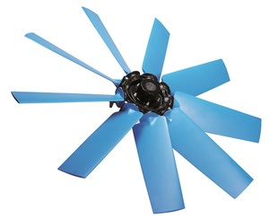 Hélice axiale à pale variable, pour diamètre de 300 à 1.270 mm en standard, à moyeu en aluminium.