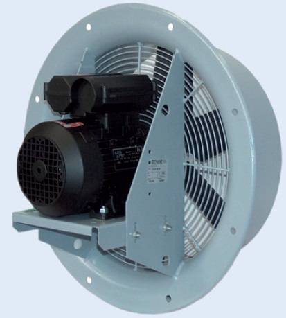 Ventilateur axial mural, de diamètre 200 à 710 mm (versions 450 à 710 non disponibles pour l'Europe), avec moteur 1~ et 3~ directement accouplé.