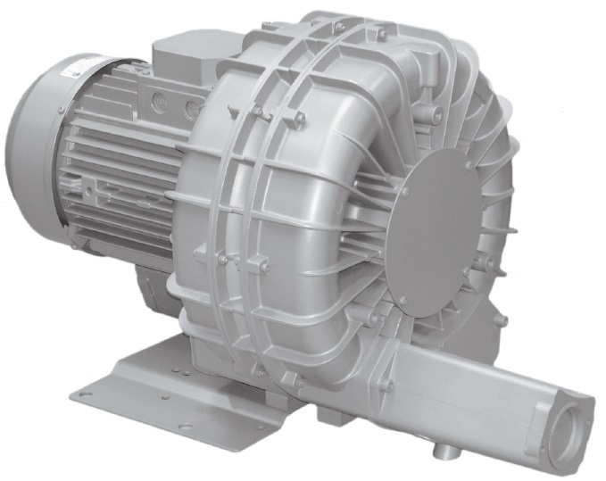 Soufflante à canal latéral double-étage, compacte et robuste, sans entretien.