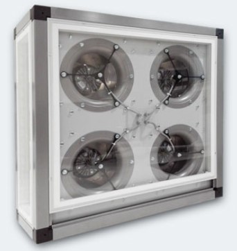 Ensemble de ventilateurs à roue libre à haut rendement (turbine à réaction, moteur EC) dans une structure unique.
