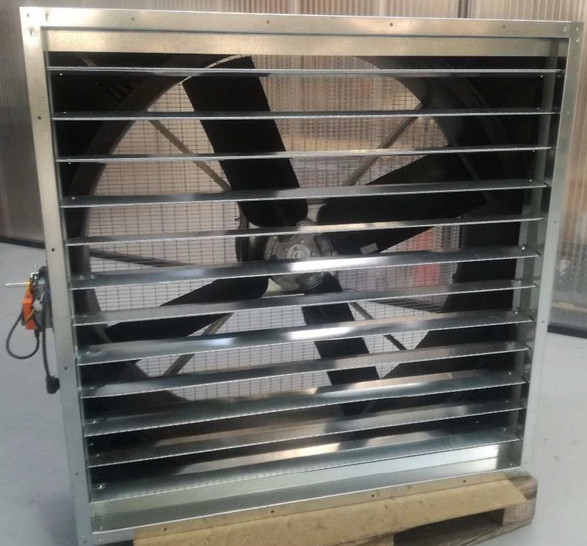 Ventilateur axial de toiture à gros débit et à sortie verticale (assure un meilleur rendement et une dispersion plus efficace).