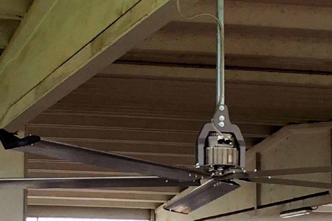 Déstratificateur type 'HVLS' avec un diamètre de 2,5 à 4 m.