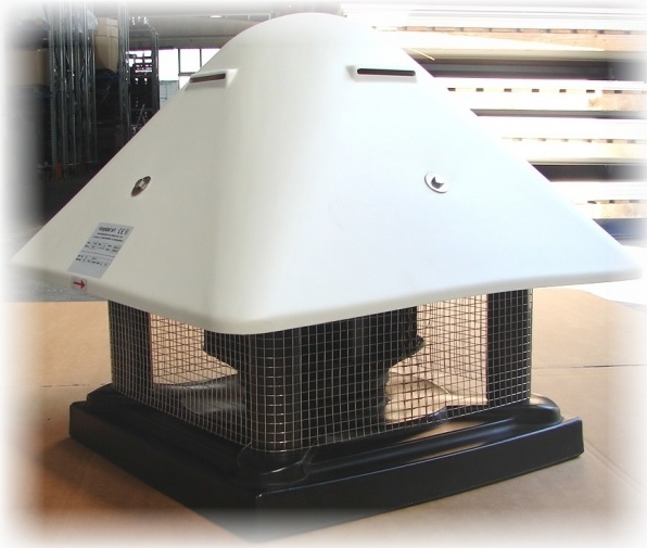 Ventilateur centrifuge de toiture 'haut rendement'.