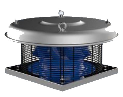 Ventilateur axial de toiture à gros débit et à sortie verticale (assure un meilleur rendement et une dispersion plus efficace).