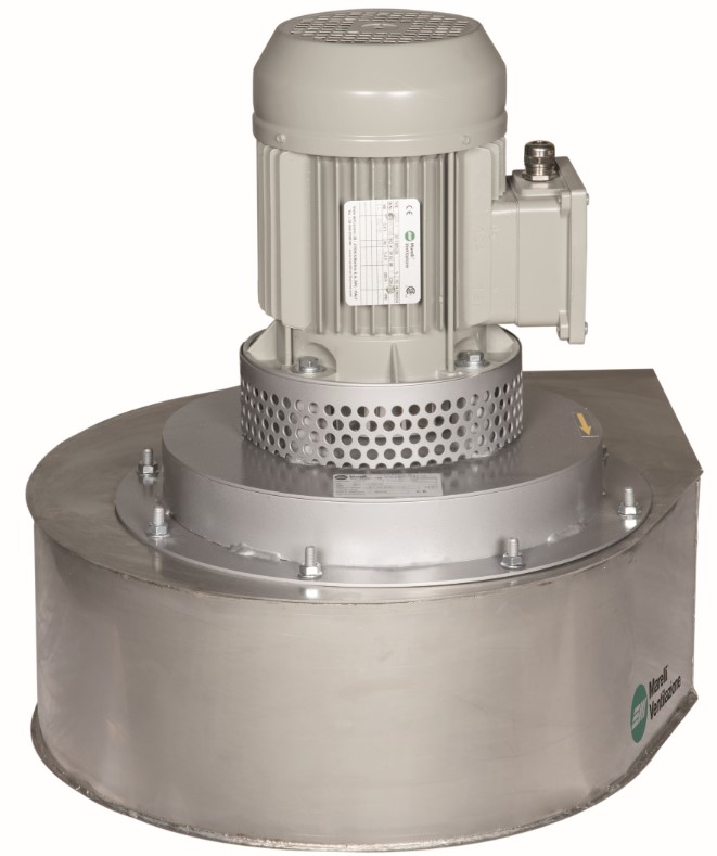 Centrifugale ventilator met achterovergebogen schoepen, met vierkantige steunstruktuur. Kleine afmetingen (geen motor tafel). Voor alle industriële toepassingen : industriële keukens, process,.... Voor propere en licht stoffige lucht, tot +200°C continu. Opties : 400°C/2H (MDY-PR-QP-HT)